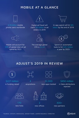 서울, 2019년 12월 5일 /PRNewswire/ -- 모바일 측정, 해킹 예방 및 사이버 보안 분야의 업계 리더 애드저스트(Adjust)가 2019 년 한 해 동안의 성과를 발표했다. 독일의 시장조사기관 스태티스타에 따르면, 모바일은 2021 년까지 전 세계 인터넷 광고 지출의 50%를 차지할 것으로 전망된다. 이 가운데, 애드저스트는 마케팅을 단순화하고 광고 해킹에 대응하기 위한 역량을 강화했으며, 모바일 광고주의 예산 보호 및 ROI 극대화를 지원했다고 밝혔다.
