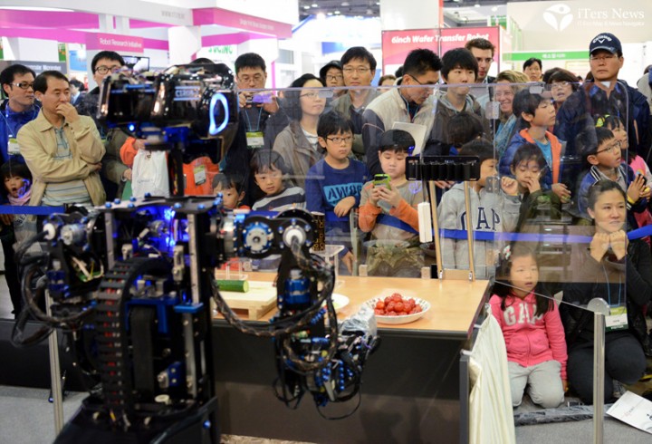 (iTers News) - Center for Intelligent Robotics, a business arm of state-funded KIST, or Korea Institute of Science and Technology, showed off kitchen maid robot CIROS 2 at Robot World 2012 exhibition opened on Oct. 26 in the Goyang City of Korea.