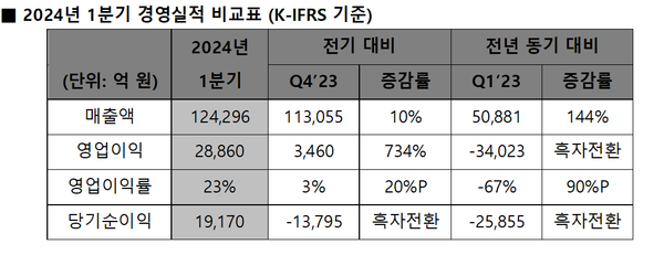 1분기 기준 사상 최대 매출, 영업이익도 역대 1분기 중 두 번째 높은 실적