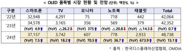 한국디스플레이산업협회 ‘디스플레이산업 주요 통계(2024년 1분기)’ 보고서 발표