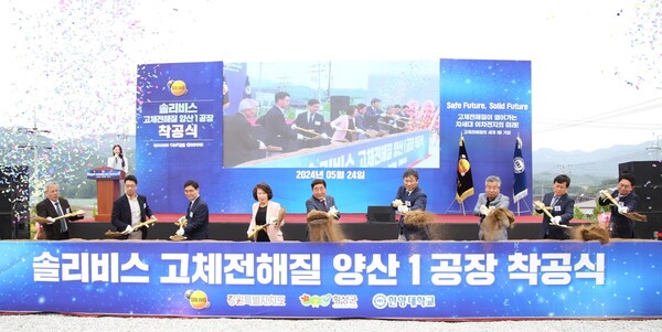 이날 착공식에는 신동욱 솔리비스 대표와 김명기 횡성군수, 김영숙 횡성군의회의장, 남진우 강원특별자치도 산업국장, 임광식 횡성군 투자유치과장, 임유미 횡성군 경제정책과장, 정문식 우천일반산단 운영협의회장, 정현철 한양대학교 부총장, 이우일 유니드 사장, 이상태 네패스이앤씨 대표 등 내외빈 100여명이 참석했다.