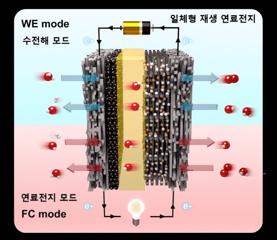 음이온 교환 막 일체형 재생 연료전지는 음이온 교환 막을 전해질로 사용하는 장치로, 알칼리 분위기에서 구동이 가능하다. 이에, 값싼 비귀금속 촉매 및 소재를 사용할 수 있어 가격 저감 가능성을 보인다. 하지만, 해당 장치의 고효율 산소 전극 개발이 초기 단계이기 때문에 낮은 효율 및 안정성을 보이고 있다.