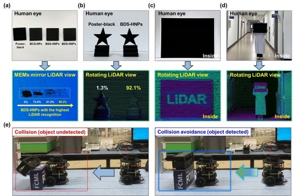 이 소재는 친수성 페인트로 도료화할 수 있어 이를 도포한 자율주행 차와 교통안전 시설물들은 상용화 라이다 센서(MEMs mirror, Rotating, Robot)에서 차량 서로 간 충돌을 방지하거나, 높은 시설물 인식률을 나타내는 것을 확인했다고 연구팀은 설명했다.