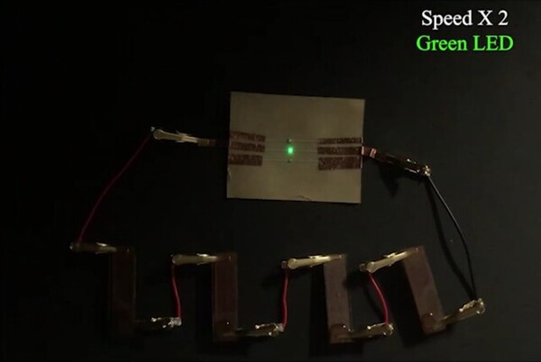 연구팀은 물의 증발과 모세관 현상을 이용한 입자 이동 현상과 ‘맥센(Mxene)’이라는 반도체 물질의 태양광 흡수 특성 등 2가지 원리를 활용했다. 이를 통해 물이 이동할 때 이온의 이동을 전기 에너지로 발생시켰다. 아울러 태양광을 흡수해 전력 생산 효과를 극대화했다. 연구팀의 실험 영상을 보면 LED 조명에 연결된 전자 장치에 스포이트로 소금물 3방울을 떨어뜨리자 LED 조명이 켜지는 장면이 나온다.