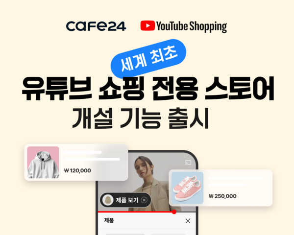 글로벌 전자상거래 플랫폼 카페24(대표 이재석)는 글로벌 동영상 커뮤니티 유튜브와 함께 세계 처음 '유튜브 쇼핑을 위한 전용 스토어' 개설 기능을 제공한다고 19일 밝혔다. 이로써 크리에이터와 브랜드 누구나 더 손쉽게 유튜브 쇼핑을 시작할 수 있다.