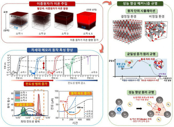 연구팀은 기존 차세대 메모리 소자의 가장 큰 문제인 불규칙한 소자 특성 변화를 개선하기 위해 이종원자가 할라이드(halide) 이온을 산화물 층 내에 주입하는 방법을 찾았다.