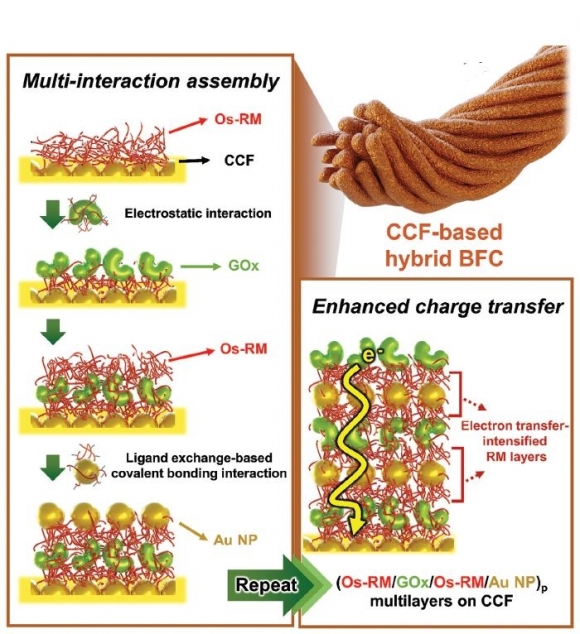 기존 바이오 연료전지는 촉매 역할 효소가 전자를 전달하는 매개체에 제대로 고정되지 않아 시간이 지나면서 효소가 떨어지는 문제가 발생했다.