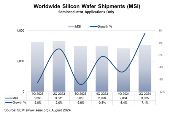 SEMI 실리콘제조그룹(SMG) 회장인 리 청웨이는 “실리콘 웨이퍼 시장은 데이터 센터와 생성형 AI에 대한 강력한 수요로 인해 회복세를 보이고 있다”며 “애플리케이션별로 회복세가 고르게 나타나고 있지는 않지만, 300mm 웨이퍼의 2분기 출하량은 전 분기 대비 8% 증가해 다른 유형의 웨이퍼 대비 큰 폭의 성장세를 보여주고 있다"고 설명했다.