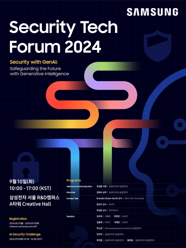 올해로 8회째를 맞은 이번 '삼성 보안 기술 포럼'은 '생성형 AI와 함께하는 보안: 생성형 지능과 함께 안전한 미래로 (Security with GenAI: Safeguarding the Future with Generative Intelligence)'라는 주제로 진행된다.