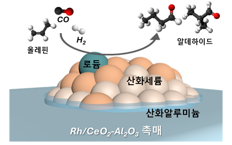 로듐 촉매의 성능을 높이기 위해 산화세륨을 도입해 촉매의 화학적 성질을 개선했다. 연구팀은 기존 기술과 견줄만한 높은 반응 성능을 가진 비균질계 촉매를 사용해 부생가스에 포함된 올레핀을 알데하이드라는 고부가가치 화학물질로 성공적으로 전환한 것이다.