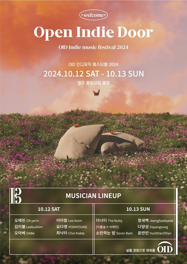 ‘오픈 인디 도어’는 오는 12~13일 중앙시장에서 개최된다. 리쿼스퀘어는 중앙시장의 숨겨진 매력을 부각하고 침체된 전통시장에 새로운 활력을 불어넣기 위해 지난 해에 이어 두 번째로 인디밴드 뮤직 페스티벌을 개최한다. 올해는 인디 밴드계에서 두각을 나타내는 11팀으로 라인업을 구성했고 오예린, 이풀숲, 서예안 등 영주 출신 아티스트들이 참여해 의미를 더했다.