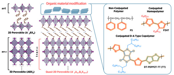 연구팀은 산화가 잘 일어나는 주석 원소의 특징에 집중했으며 특히 페로브스카이트 소재 표면에 황(sulfur) 원소가 포함된 고분자 물질을 도입했을 때 페로브스카이트 소재의 전기적 성질이 향상되는 현상을 발견했다.