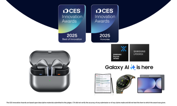 모바일 부문에서는 프리미엄 사운드와 적응형 소음 제어 최적화가 적용된 '갤럭시 버즈3 프로'가 최고 혁신상을 수상했고 '갤럭시 AI', '갤럭시 Z 폴드6', '갤럭시 탭 S10' 시리즈, '갤럭시 워치7'로 4개의 혁신상을 수상했다.