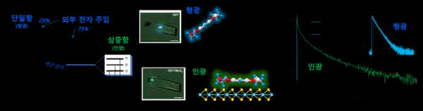 연구팀은 TMD의 무거운 전이금속이 유기물에 강한 스핀-궤도 상호작용을 유도해 순수 유기물의 전이 속도를 가속화하는 것을 발견했다. 이에 따라 두 물질 간 화학적 결합 없이도 상온에서 효과적으로 인광을 구현할 수 있었다.