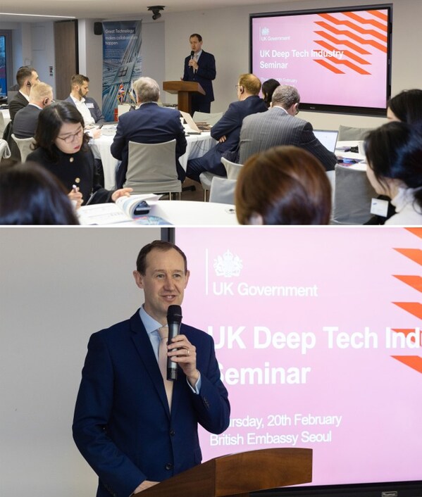 서울, 한국 2025년 2월 21일 /PRNewswire=연합뉴스/ -- 주한영국대사관 산업통상부는 2월 20일 아스톤홀에서 딥테크 (Deep Tech) 분야의 혁신적인 영국 기업들이 참여한 가운데 '딥테크 기업 세미나'를 성황리에 개최했다. 이번 세미나는 인공지능(AI)과 반도체를 포함한 첨단 기술 분야에서 영국 기업들의 혁신적인 솔루션을 소개하고, 한국과의 협력 기회를 모색하는 자리로 마련됐다.