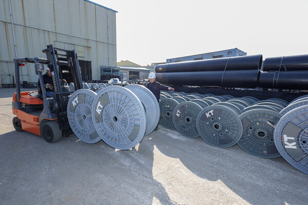KT(대표 김영섭)가 국내 통신사 중 처음으로 친환경 보빈을 도입한다고 18일 밝혔다. 보빈은 케이블을 연속적으로 감는 데 사용하는 원통형 구조물이다. 목재로 만든 제품이 일반적이며 케이블 보관과 운송에 활용된다.
