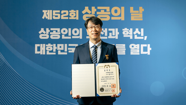 SK하이닉스 장태수 부사장(미래기술연구원 산하 담당)이 지난 19일 서울 중구 대한상공회의소(이하 대한상의)에서 열린 ‘제52회 상공의 날’ 기념 행사에서 대통령 표창을 받았다.