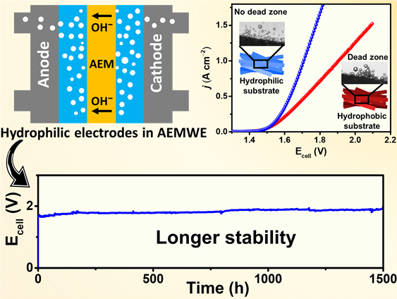최 교수팀은 초친수성인 티타늄 산화물 나노튜브 위에 다공성 니켈-철 나노입자를 전착해 초친수성 전극을 제작했다. 이 전극은 전해질이 쉽게 달라붙어 수전해 중에 발생하는 수소와 산소 기포를 신속하게 제거해 수소 생산 효율이 크게 올라갔다.