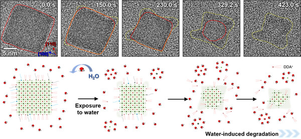연구팀은 실시간 액상 투과전자현미경(in-situ liquid-phase TEM) 기법을 활용해 페로브스카이트가 물과 접촉할 때 발생하는 구조적 변화를 원자 단위에서 포착했다.