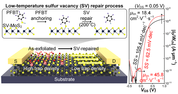 울산과학기술원(UNIST) 전기전자공학과 권지민 교수팀과 포스텍(POSTECH) 화학공학과 노용영 교수팀은 차세대 반도체 소재인 이황화몰리브덴(MoS2)의 결함을 200℃에서 제거하는