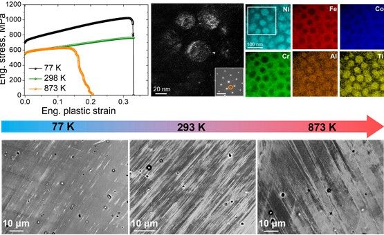 이 새로운 합금은 영하 196도(77K)부터 600도(873K)까지 넓은 온도 범위에서도 강도와 유연성을 거의 일정하게 유지한다.