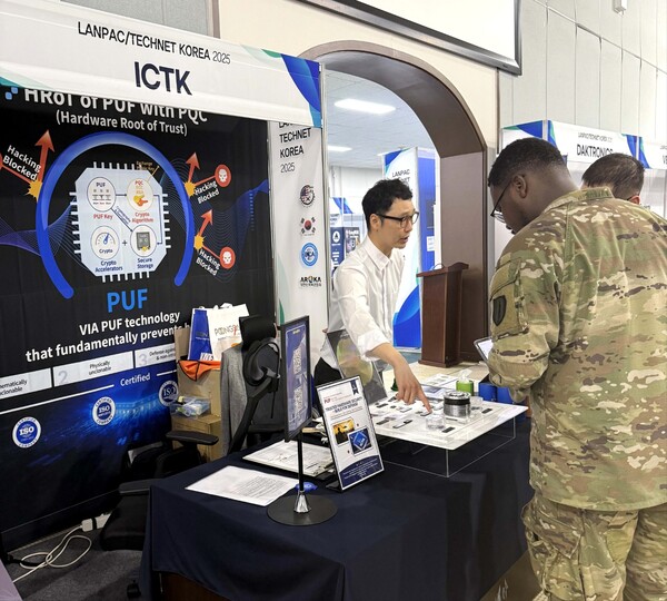보안 팹리스 기업 아이씨티케이(대표 이정원)는 '제7회 한미 연합 세미나/장비전시회(AUSA LANPAC/TECHNET Korea 2025)'에 참가해 PUF 기반 복제방지 보안칩과 솔루션을 선보였다고 29일 밝혔다.