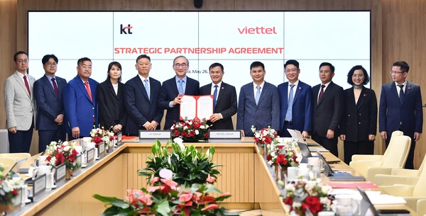 KT(대표 김영섭)는 현지 시간 26일 비엣텔 그룹과 AX 협력을 위한 전략적 파트너십을 체결했다고 27일 밝혔다. 베트남 하노이 비엣텔 그룹 본사에서 열린 이번 협약식에는 KT 김영섭 대표와 비엣텔 그룹 Tao Duc Thang(따오 득 탕) 회장 겸 CEO가 참석했다.