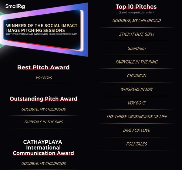 함께 열린 사회적 임팩트 이미지 피칭 세션(Social Impact Image Pitching Session)에는 중국, 미국, 벨기에 등 10여개국 크리에이터들이 작품 124편을 제출하기도 하였다. 작품은 장애인 돌봄, 생태 보호, 무형문화유산 보존 등을 주제로 시리즈가 18편, 단편이 53편, 장편이 53편이었고 형식도 다큐멘터리, 애니메이션, 실험영화 등으로 다양했다.