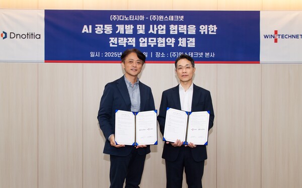 장기기억 인공지능(AI) 및 반도체 통합 솔루션 전문기업 디노티시아(대표 정무경)sms 네트워크 보안 전문기업 윈스테크넷(대표 김보연)과 ‘MCP (Model Context Protocol) 기반 AI 보안 인프라 공동 개발 및 사업 협력’을 위한 업무협약(MOU)을 체결했다고 23일 밝혔다.