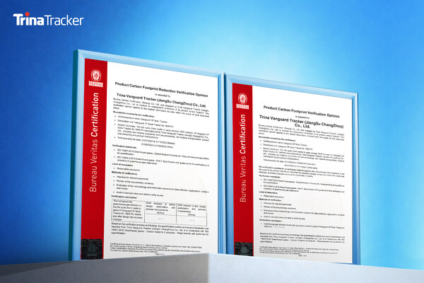 창저우, 중국 2025년 10월 2일 /PRNewswire/-- 트리나솔라(Trinasolar) 산하의 스마트 태양광 추적 솔루션 공급업체인 트리나트래커(TrinaTracker)는 뷰로베리타스(Bureau Veritas)로부터 Vanguard 2P 트래커에 대한 제품 탄소 발자국 인증(PCF)과 Vanguard 1P에 대한 제품 탄소 발자국 감축 검증을 완료했다고 밝혔다. 올해 초 Vanguard 1P의 PCF 인증 이후 마침내 Vanguard 시리즈 전체가 탄소 발자국 성능에 대해 독립적인 검증을 마치게 됐다.