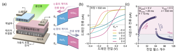 광주과학기술원(GIST)은 반도체공학과 강동호 교수와 경북대학교 전기공학부 장병철 교수 공동 연구팀이 뇌의 신경세포(뉴런)들이 신호를 주고받는 연결 부위인 ‘시냅스’의 동작 원리를 바탕으로, 빛과 전압을 이용해 단일 소자에서 전류의 ‘양(+)·음(–)’ 두 방향을 모두 제어할 수 있는 ‘광전자 인공 시냅스’를 개발했다고 밝혔다.