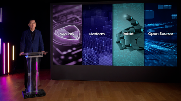 이날 기조연설에서 삼성전자는 ▲AI 기반 차세대 보안 혁신 ▲지능형 소프트웨어(S/W) 플랫폼의 진화 ▲AI를 활용한 로봇 기술의 도약 ▲오픈소스 AI의 생태계 확장 등 인공지능 전환 시대의 4가지 핵심 기술을 소개했다. 또 리눅스 재단(Linux Foundation)의 짐 젬린(Jim Zemlin) 의장이 최신 오픈소스 AI 기술 동향을 공유했다.