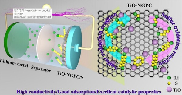 DGIST 연구팀이 개발한 TiO-NGPC 소재는 탄소 구조가 벌집처럼 다공성이면서도 높은 전기전도성을 가지고 있어 황을 안정적으로 보관하고 전하 전달을 원활하게 하는 역할을 한다.