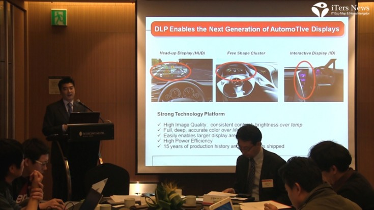 TI’s legacy micro-mirror-based DLP projection engines are also being recalibrated to power a head-mounted- display system which will project in-car dash-board navigation information on a front windshield window. The HMD system was already put to the test for the commercial rollout in the foreseeable future.
