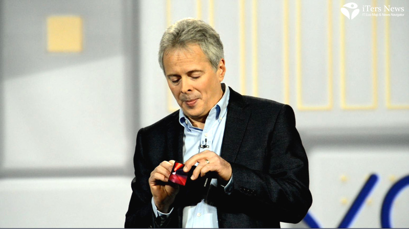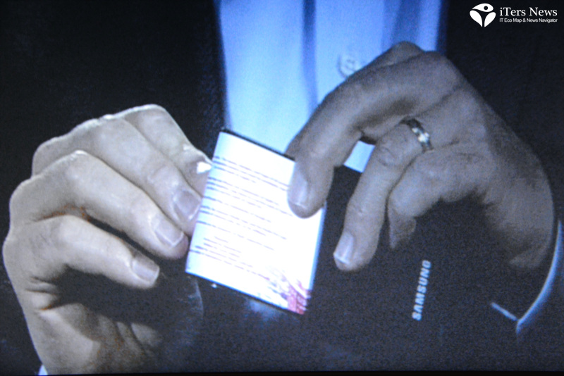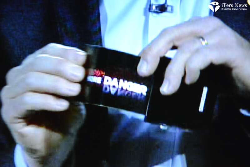 During the keynote session of Samsung system LSI president Stephen Woo, vice president Berkeley was brought on stage. He freely bent YOUM plastic OLED display inward and outward like a sheet of plastic to demonstrate how far it can be rolled up.