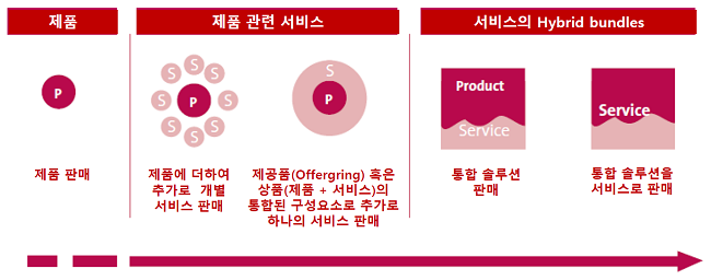 독일기계·설비산업협회(VDMA)의 장학재단 Impus Stiftung(이하 Impuls)는 스마트 서비스(벨트)에서 논하는 데이터 기반 비즈니스를 힐든브랜드(Hildenbrand) 등이 2006년 쓴 논문(Hildenbrand et al. 2006)의 제품 기반 서비스 분류방식을 이용해 4가지로 설명한다. △개별 서비스 추가 판매 △서비스를 제공품(Offering) 혹은 상품(제품과 서비스의 결합)의 통합된 일부분으로 판매 △통합된 솔루션으로 판매 △통합된 솔루션을 서비스로 판매 등으로 분류한다.